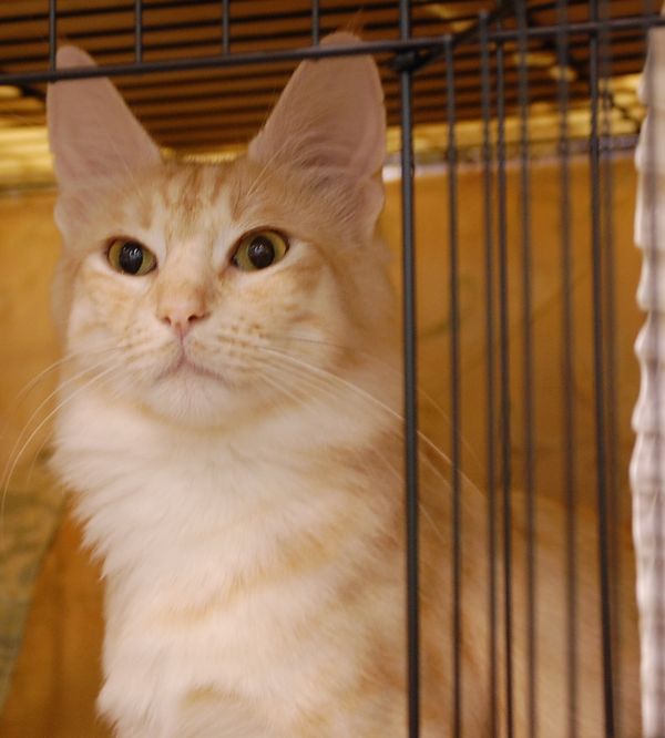 その子はカメオスポテッドタビーの男の子で、淡いなんとも猫なばれしたカラーと、きりりとした涼しげな顔立ち、そして長い手足ときれいなボディが印象的で。しかし、当時はすでにショーには参加しておられず、会うことはできなかったのです。
