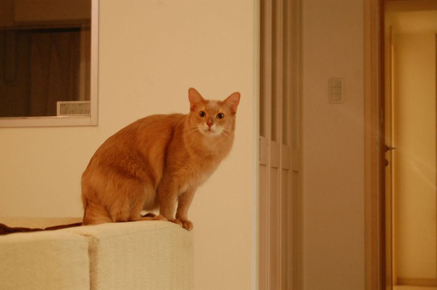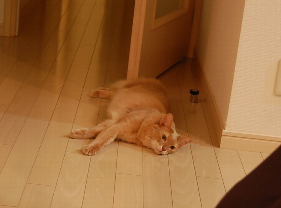 パパやそのほか大勢の猫と対照的に、好奇心旺盛なちょりさんは上が気になっていつも以上にご機嫌でした。
