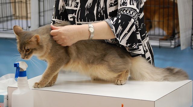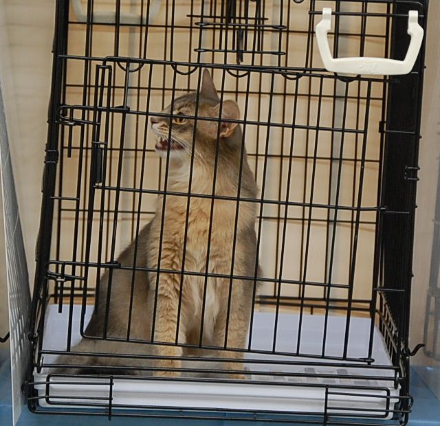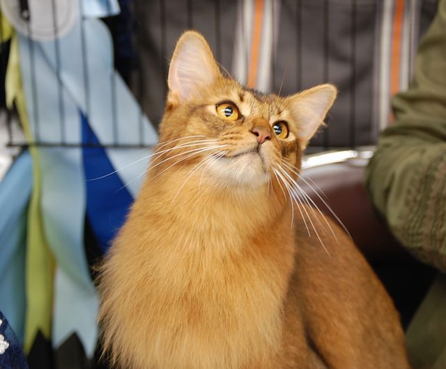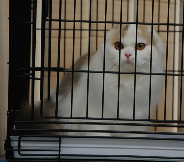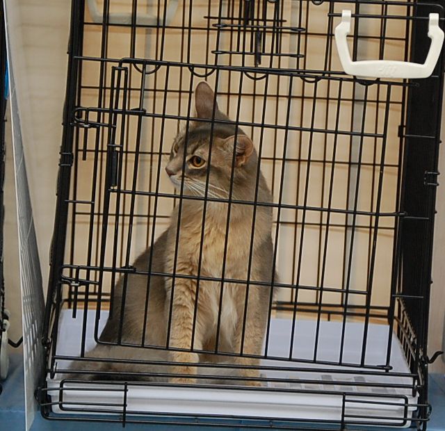 自宅では甘えん坊だそうなのですが、たくさんの猫さんたちがいるショー会場は苦手な模様