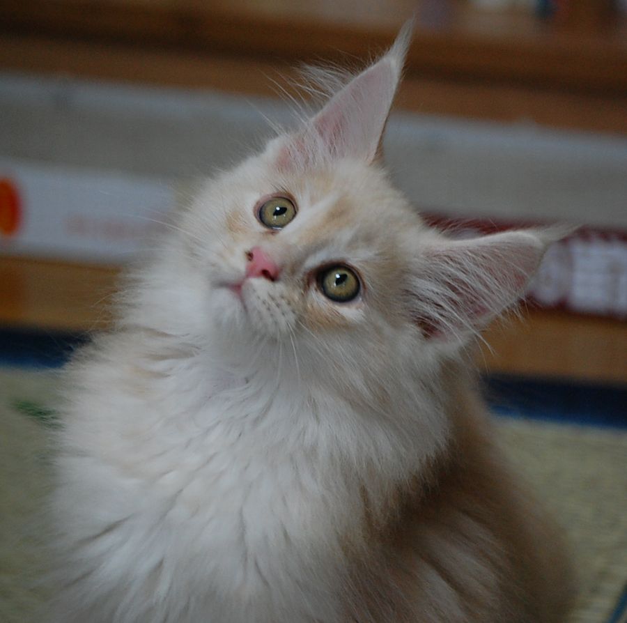 この美形のミルクティ色のメインクーンの子にゃんは誰でしょう??