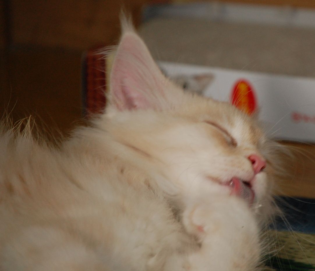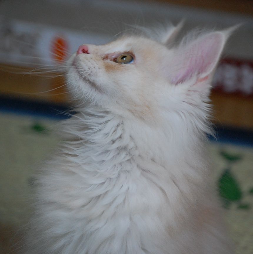 ちゃいさんも一目ぼれだったらしいのですが、ワタクシもかなりツボで、いつかミルクティか蜂蜜色(&白必須)のメインクーン男子をお迎えすることを夢見るワタクシは、ブリードをお休みするかもしれないという寝子さんとこで産まれたこの猫さんが大変気になってました。