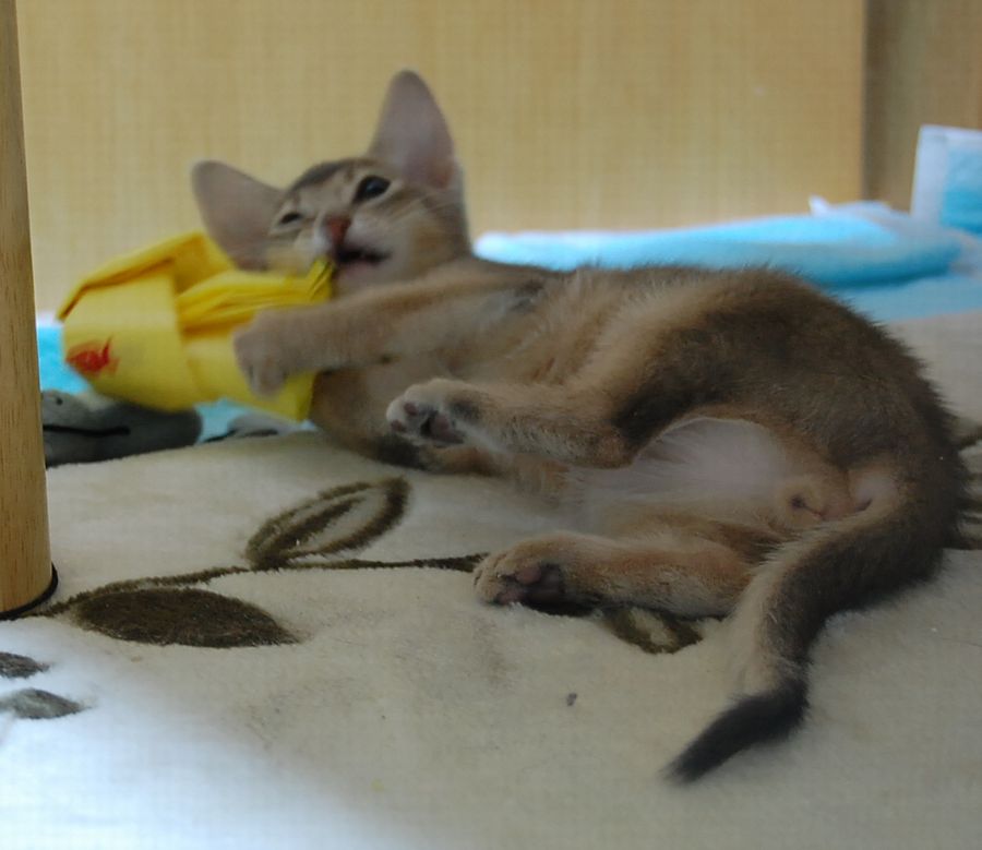 外観はアビシニアンとして考えてもよいと思うのですが、アビよりもちょっと毛がふかっとしていたり、がっしりしていることもあります。性格はアビよりもややおっとりなことが多いような気も。
