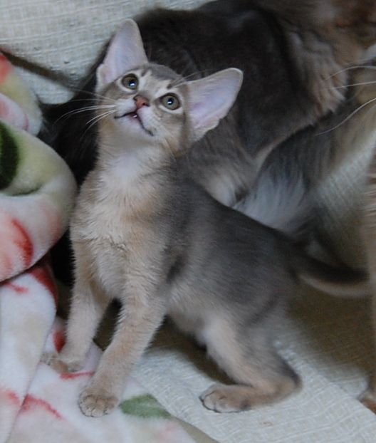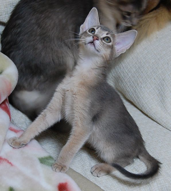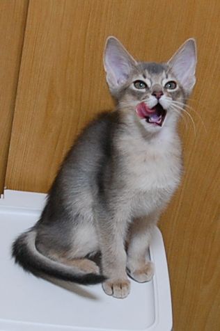 ソマリ(長毛のアビシニアン)と言う品種をよりよくしていくためにアビシニアンの血をいれていく過程で産まれる短毛ソマリのことです。