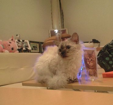 女の子ということや、見た目のふわふわさもあるのでしょうが、小さくてとても軽いウィルちゃんは、膝にのっていてもふわりって感じで、うちの3にゃんとは全然違いました。