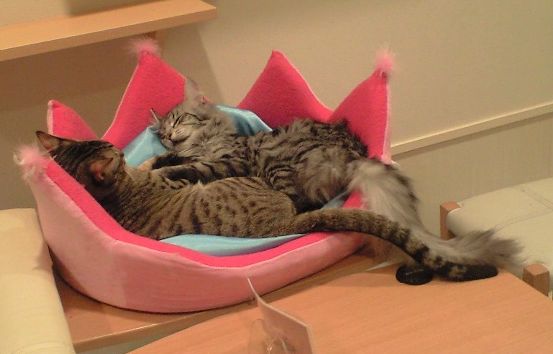 やらせです(笑)。お店の方が寝てる猫の周りに猫集めてくれました。